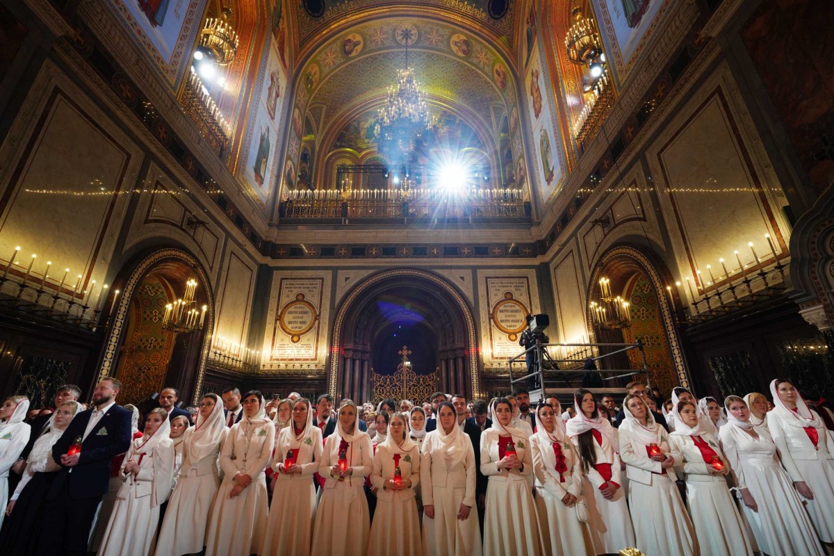 В ночь с 15 на 16 апреля в кафедральном соборном Храме Христа Спасителя в Москве Святейший Патриарх Московский и всея Руси Кирилл совершил Пасхальные богослужения — полунощницу, крестный ход, Пасхальную заутреню и Божественную литургию святителя Иоанна Златоуста.